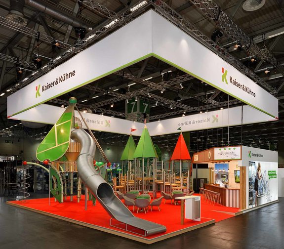 Kunden Kaiser und Kühne auf der FSB 2019. Der international agierende Hersteller von Freizeitgeräten stellte seine Produkte durch deren bunte Inszenierung in