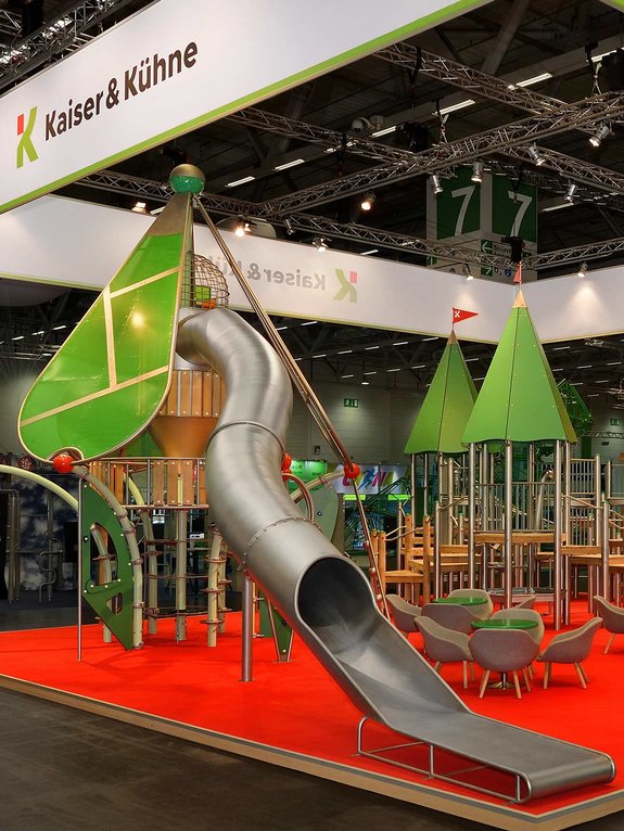 Der wohl auffälligste Eyecatcher: ein 4 Meter hoher Rutschturm. Dieser konnte von den Messebesuchern ausprobiert werden und sorgte für einen erlebnisreichen Standbesuch.