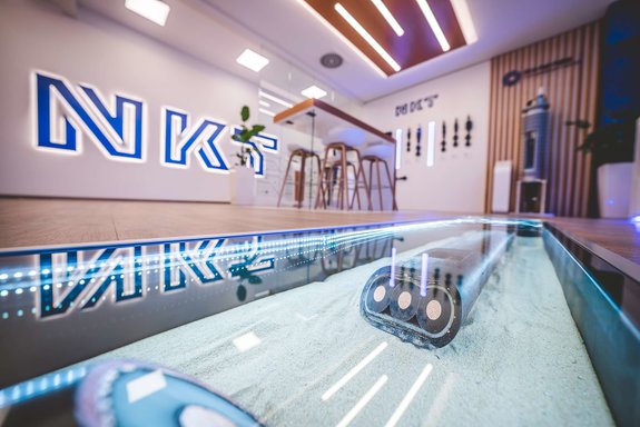 Für den dänischen Konzern der Kabelindustrie zählt die Entwicklung neuer Technologien zum Bestandteil der Unternehmensgeschichte. Verschiedene Exponat-Innovationen werden prominent an den Wänden präsentiert. Die klare Formensprache des Showrooms, kombiniert mit einer weiß-blauen Farbgebung, erzeugt eine harmonische Gesamtwirkung. Eine begehbare Bodenvitrine setzt als Eyecatcher das Kernprodukt des Kunden in Szene. Insgesamt sorgt das moderne Innovationszentrum des Unternehmens bei den Besuchern für einen elektrisierenden Eindruck.