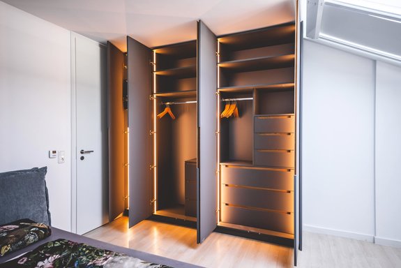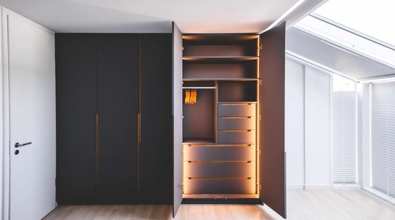 Wenn die Schrankkonfiguratoren an ihre Grenzen stoßen, beginnt für uns die Maßarbeit. Individualität, Flexibilität und die persönliche Note des Besitzers bestimmen das Erscheinungsbild des Einbauschranks.