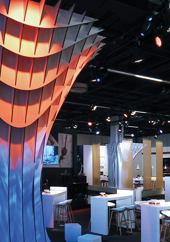 Ein aufeinander abgestimmtes harmonisches Lichtkonzept rundete das Gesamtbild der Messekonzeption ab, indem je nach Tages- und Eventzeit unterschiedliche Lichteffekte abgespielt wurden. Passend dazu gestaltete sich ein offener und freundlicher „Come Together“-Bereich in der Standmitte, der von allen Markenbotschaftern als zentraler Ort der Kommunikation genutzt wurde und nach Messeschluss ebenfalls als „After-Work-Meetingroom“ umfunktioniert wurde. Ein Jazz Ensemble sorgte mit Live Musik für zusätzliche Unterhaltung und unterstrich so die stilvolle und angenehme Atmosphäre auf der IMM Cologne.