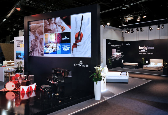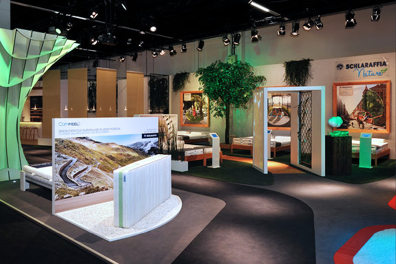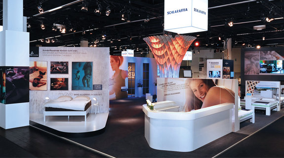 Neben Schlaraffia präsentierte der Konzern ebenfalls seine Marken Swissflex, Grand Luxe und Ubica dem internationalen Messepublikum. Auf Basis dieser markenreichen Präsentation entwickelte sich ein vielschichtiges modernes Messekonzept auf über 1.000 Quadratmetern Standfläche.