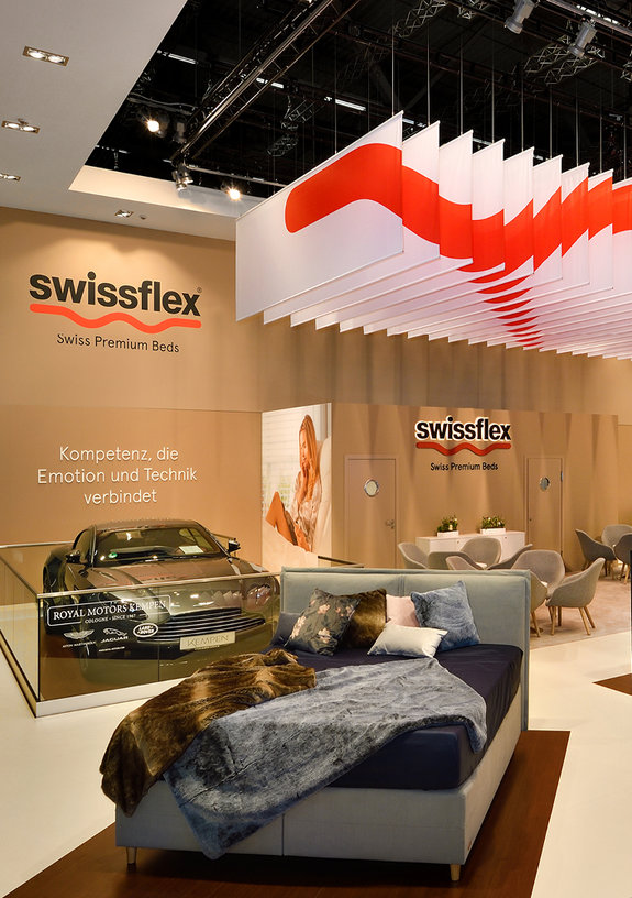 Swissflex steht seit über 60 Jahren für Schlafkomfort der gehobenen Klasse. Unter Berücksichtigung des Markenversprechens „Geborgenheit der Extraklasse“ sollten wir auf der IMM eine Produktwelt entwickeln, die diesem gehobenen Anspruch gerecht wird.